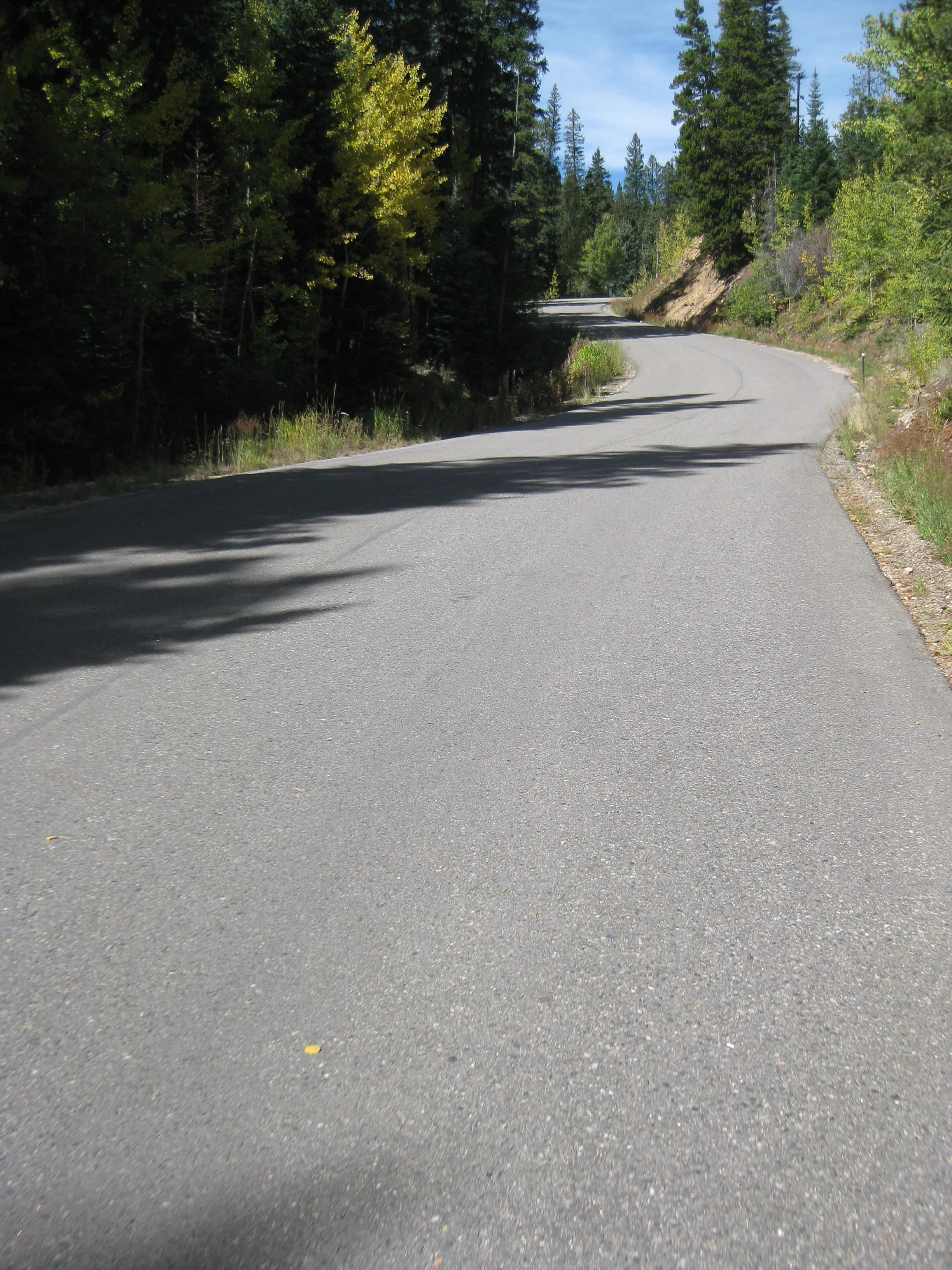 The three-mile climb gets strenuous at times, but there are no hike-a-bike sections. Despite being on a "road," you really get the feeling that you're in the middle of the wilderness. There are cabins and houses scattered intermittently all the way up, but I only saw two people and one dog (separate parties, oddly). This is the kind of place where you feel like you've actually done it. You've stepped beyond the race of rats, beyond your Verizon zone, and into yourself. A mind can forego its preoccupations, and in fact its occupations, and perform that periodic necessity: focusing on nothing at all.