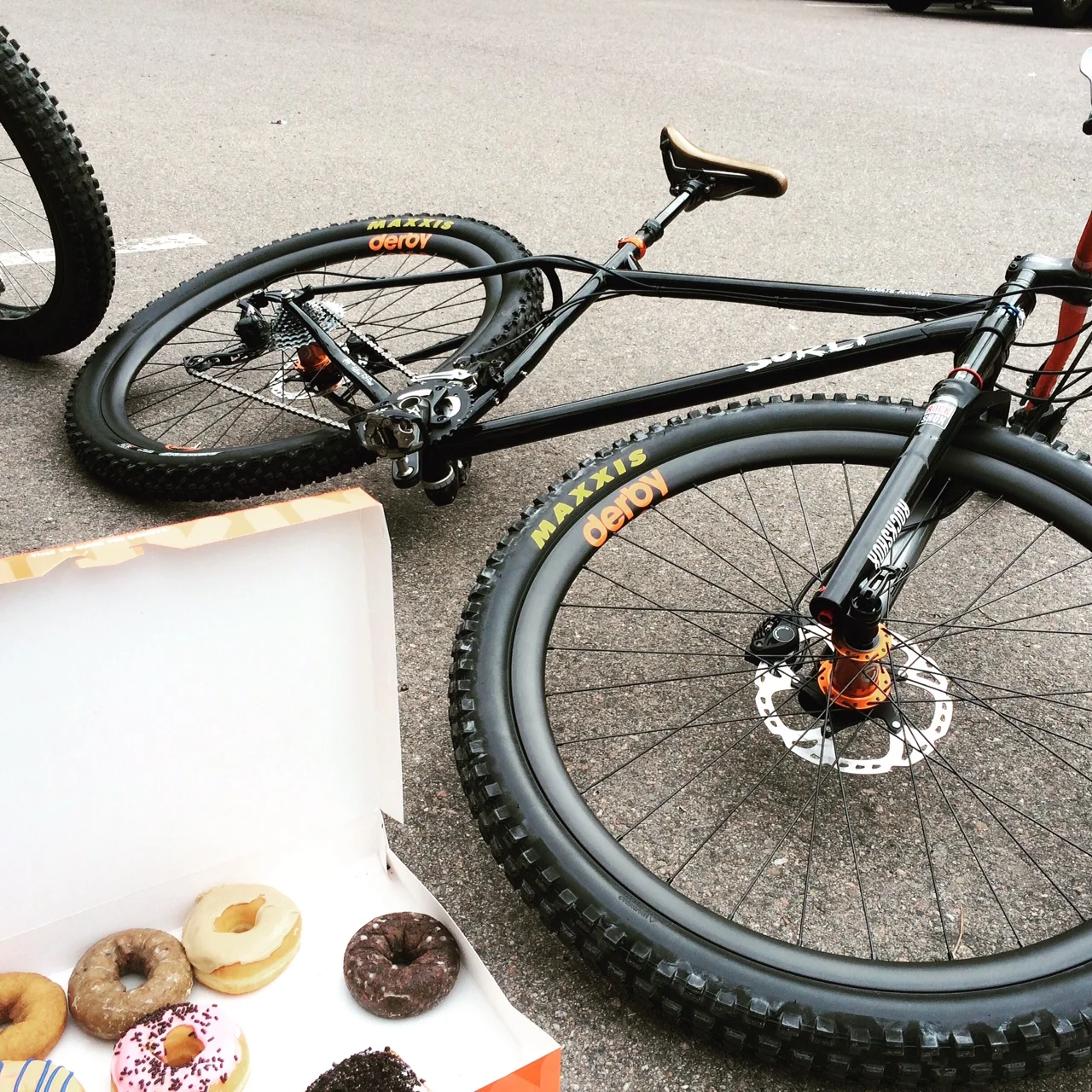 Dirt contains a natural antidepressant. The sun strengthens our bones. Mountain biking makes us happy. So do donuts. If you want to en-gooden your life, join us on Sunday mornings for some shred-tastic mountain biking and yummy donuts. Yeah! There are no trophies involved, and nobody cares if you're out of shape, hungover, or have awakened like Gregor Samsa to find you've transformed into a giant insect. Whatever. Just get your bike and come with us. Meet us at the trailhead at the specified time. The first twelve riders will get a donut. If you're the 13th person to arrive, you may have to wear the empty box as a helmet. If more than 12 people start showing up for these rides, we'll start bringing more donuts.