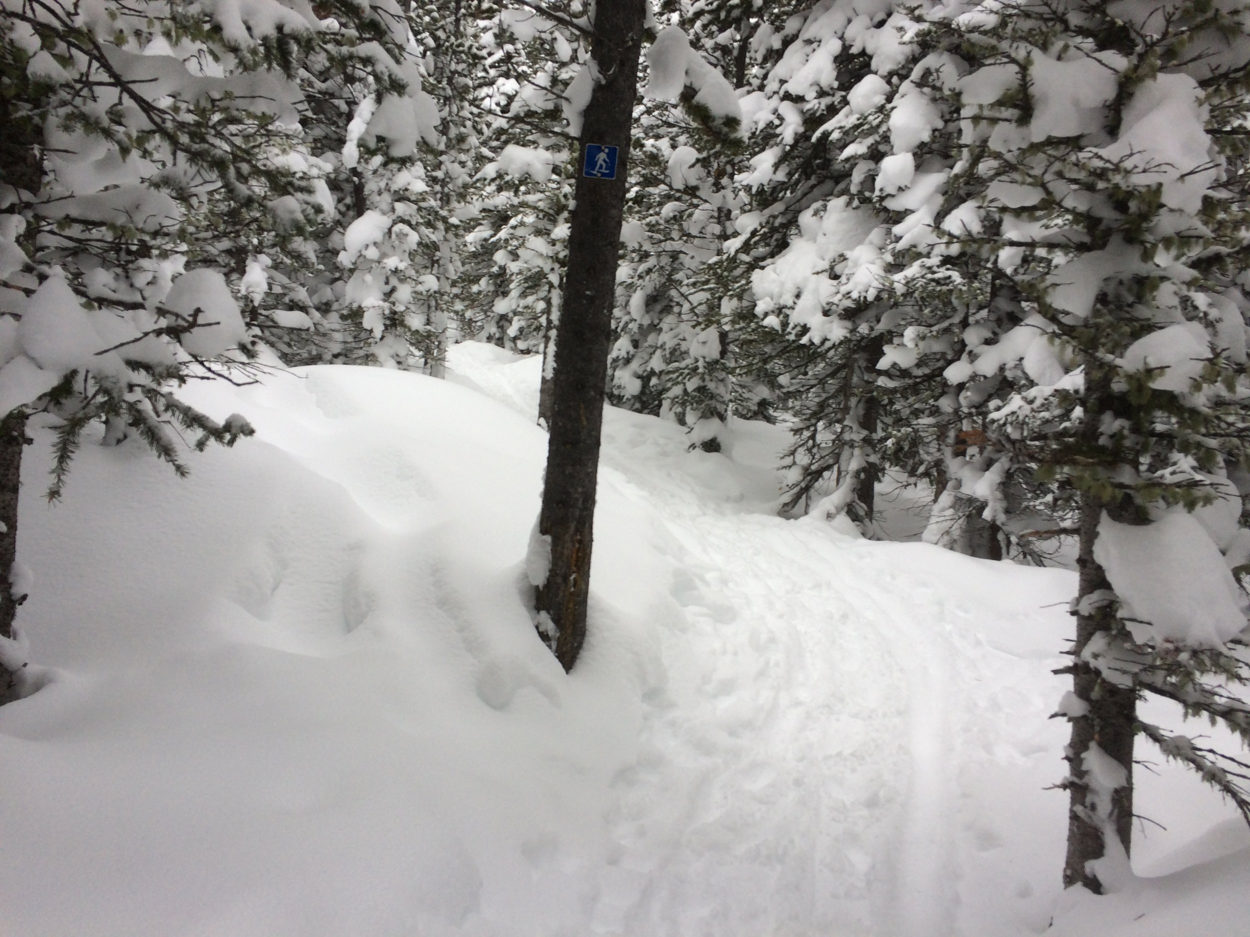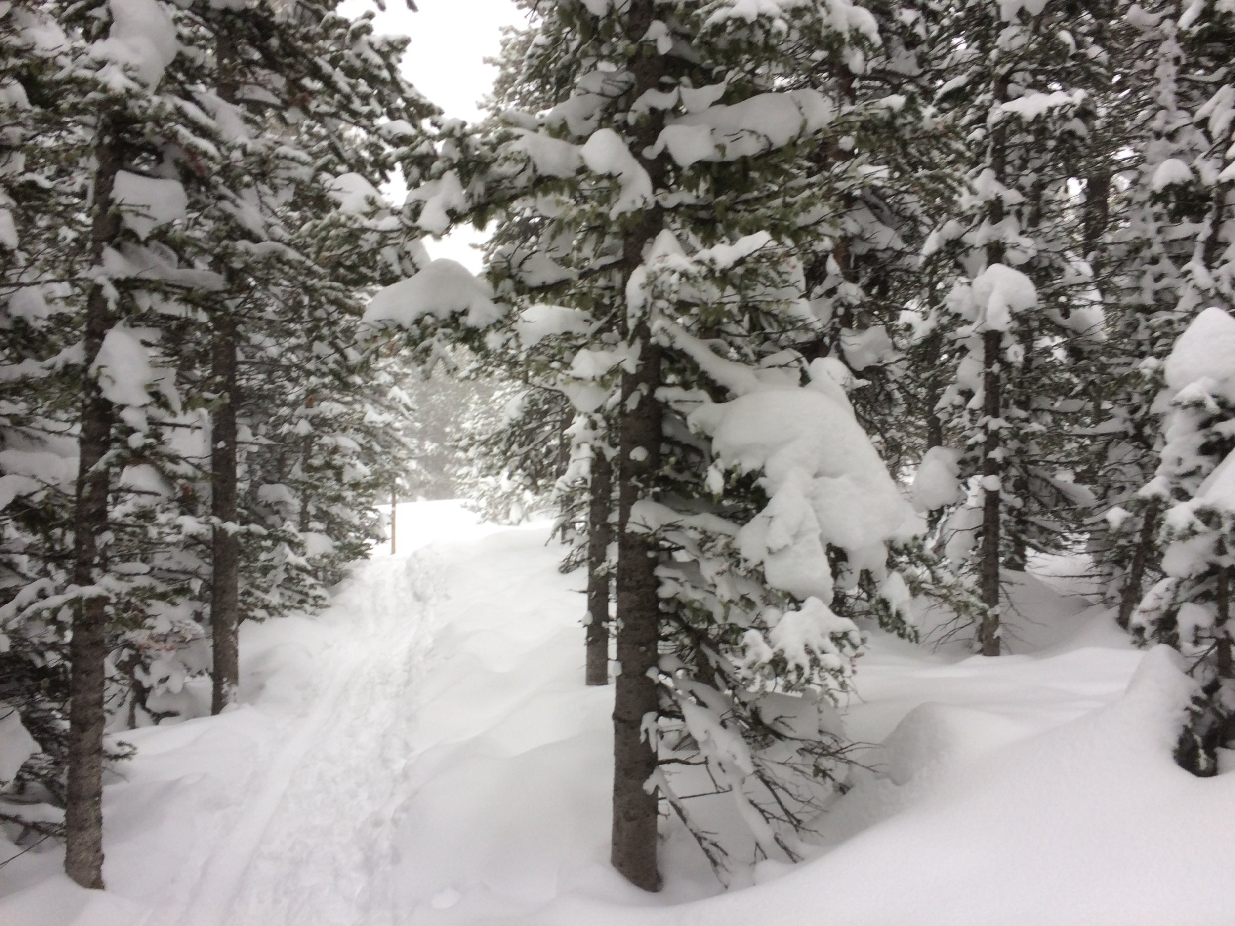 Simply mounting your bike and making it move forward can be difficult. Really difficult. It often takes 5-10 attempts to get rolling. The foot you have on the ground may sink into the snow or slip, causing you to topple. Because your gearing is so small, one-quarter of a pedal stoke is enough to move the bike forward about an inch, so you have to hop on and immediately get your feet going like Scooby-Doo's. Once you mount the bike and get your feet going, your rear wheel may dig straight down instead of rolling forward. Either wheel may slip off the packed trail into the powdery abyss. You often have to ride with your front wheel turned sideways like a plow while you fight for balance and traction, and that can at any moment throw you into the woods.
