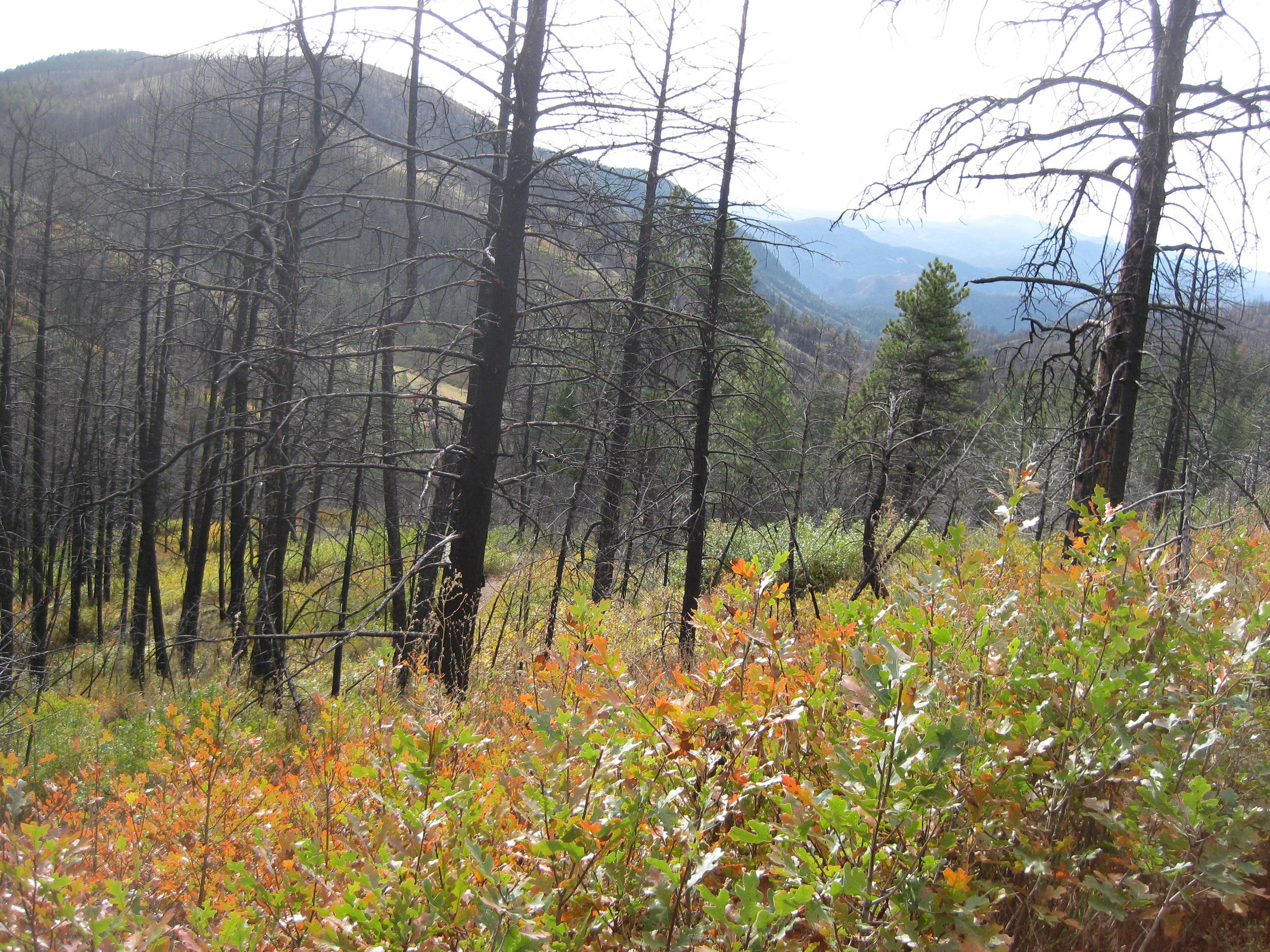There is a little climbing after this initial push, but the rest of the climbs are short and mellow. From the top of this hill onward, it felt like one very fast, winding descent. Once the trail is ridden down and buffed out, it's going to feel like a bobsled run. There's nothing technical here, just lots of fun. You'll also get some pretty great views of the surrounding area, of which I didn't take a single picture because I could not make myself stop riding for even one minute. When we did finally stop, I took a few quick foliage pictures before we rolled on.