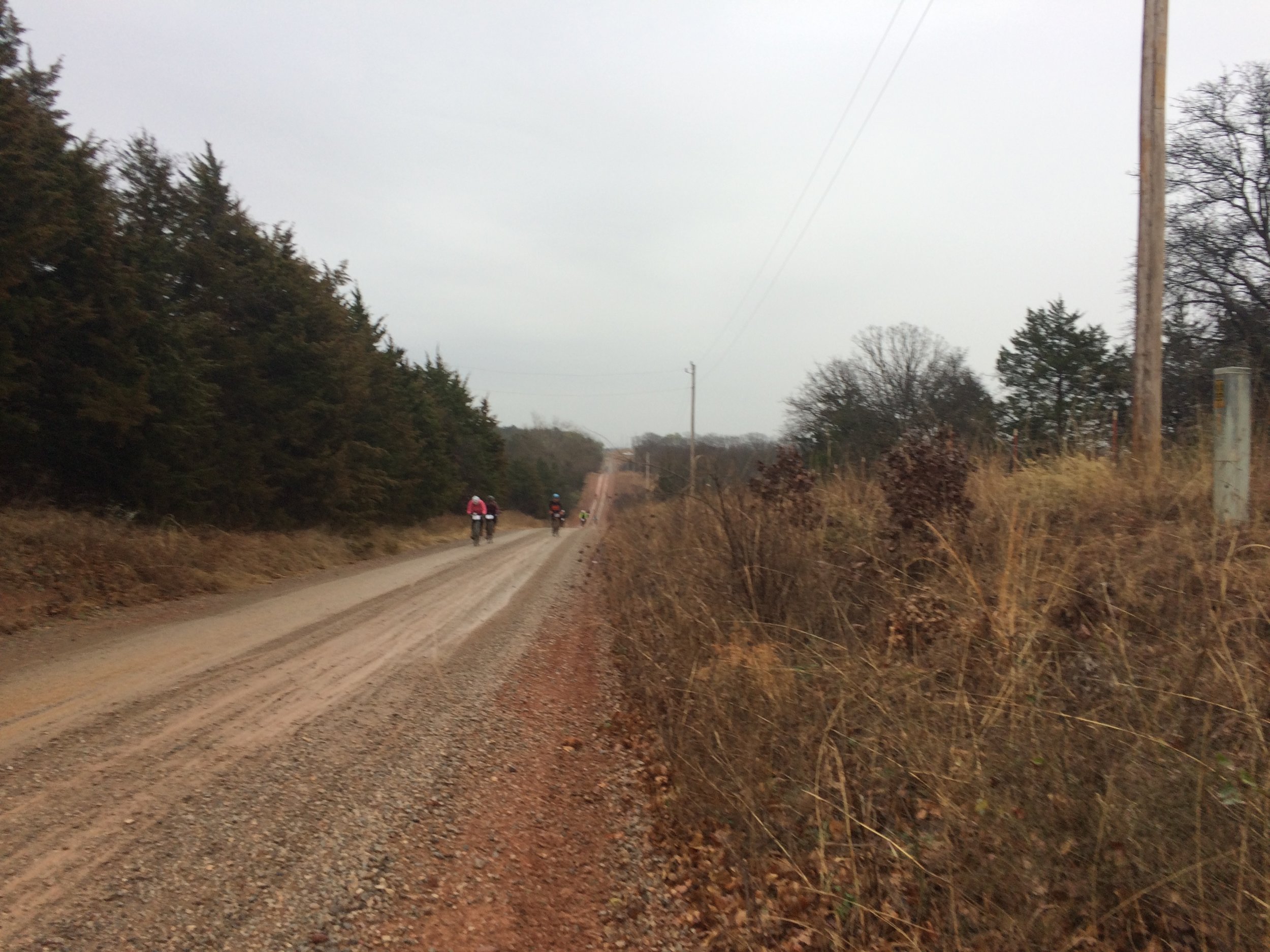 We rode a little pavement to get out of town, but soon hit dirt. It was not bad. It hadn't rained all that much. The temperature was forty degrees--as it would remain--but the riding was pleasant.