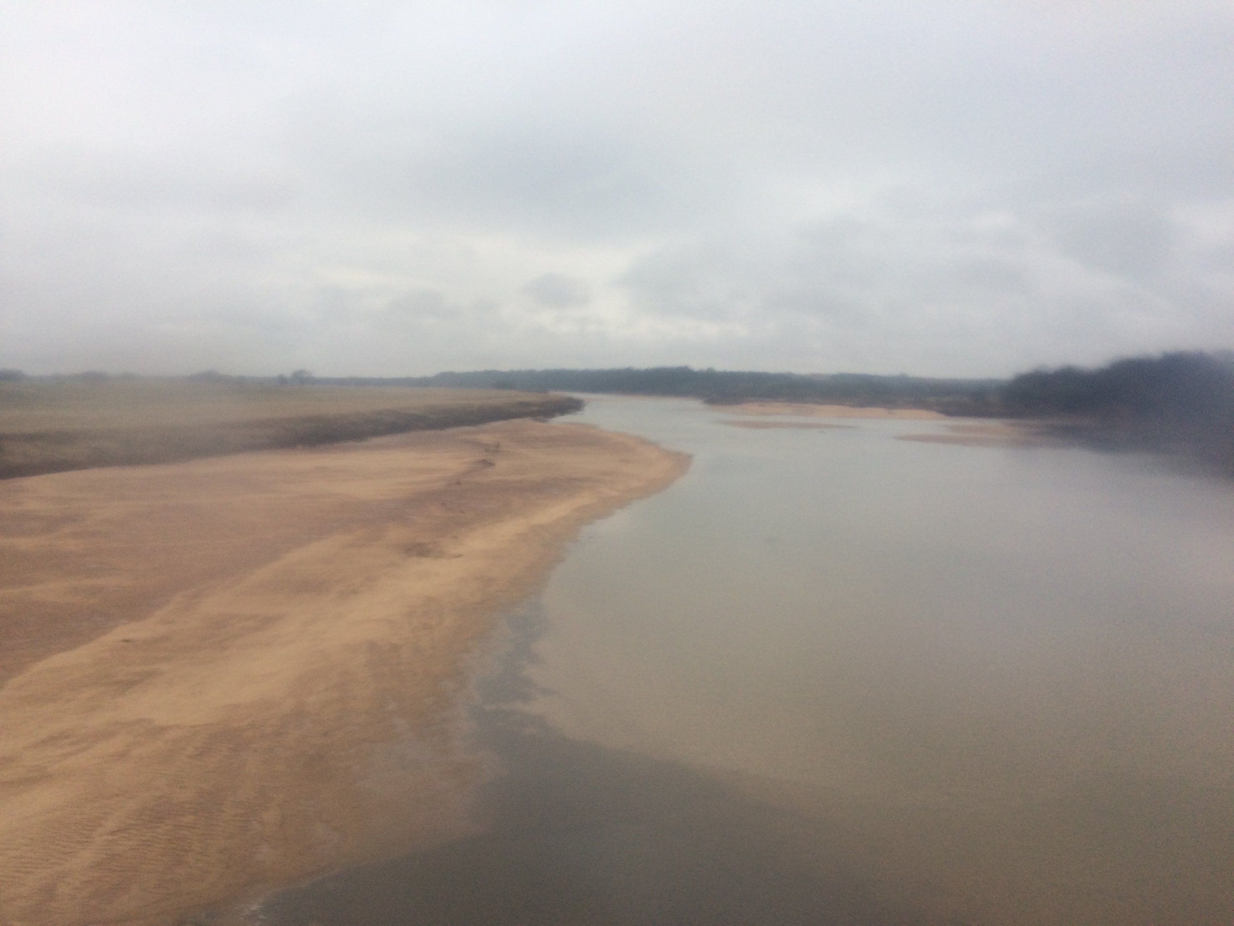 The above photograph, taken through a wet baggie, doesn't do the landscape justice. The water was translucent, and I could see ripples in the sand of the river bottom, which were purple and aqua in the strange light. With my glasses on, everything had been reddish-brown or brownish-red.