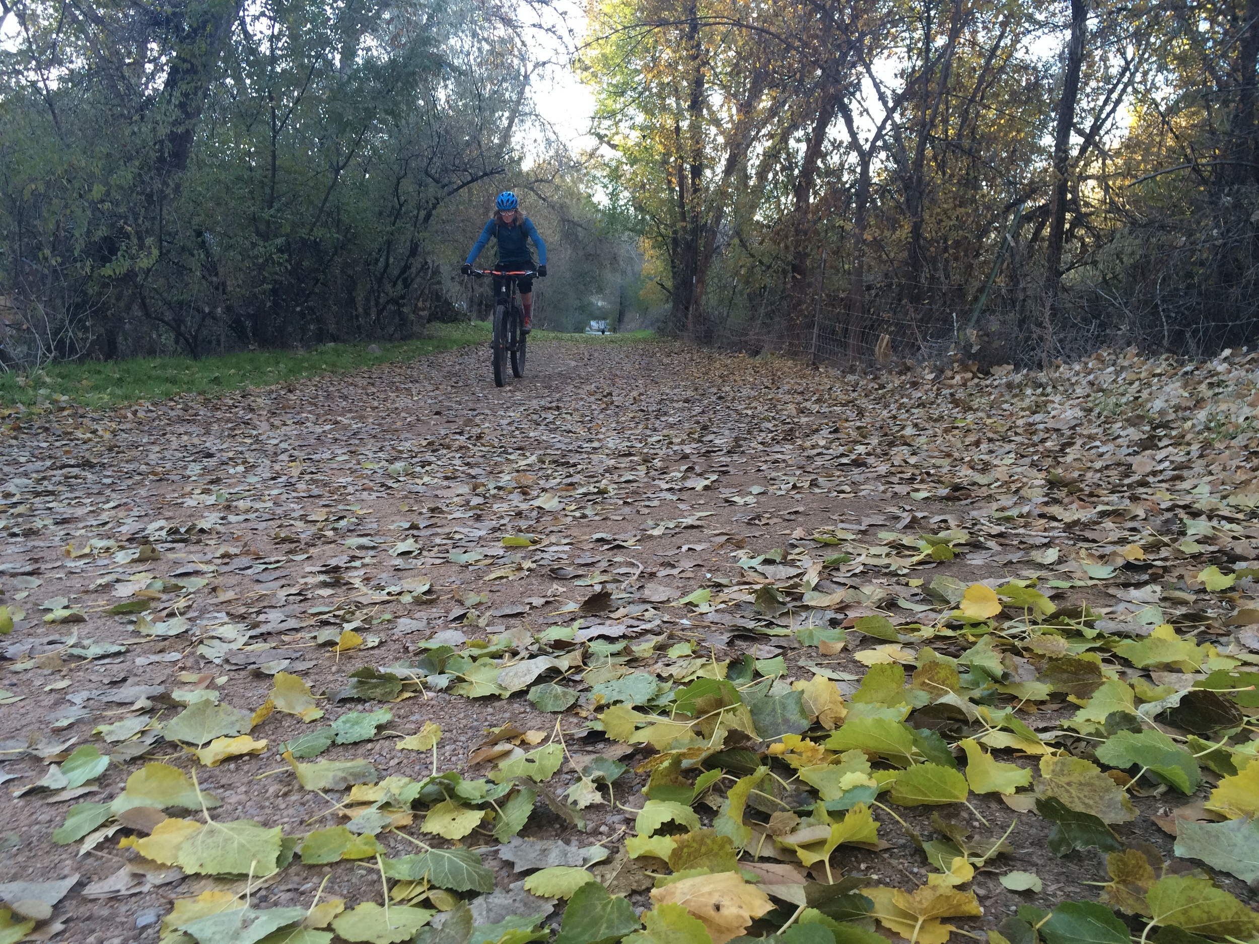 There's a no-dab challenge on this trail, which was kind of fun. It seemed fairly easy until I fell into a yucca bush on the flattest, smoothest section of the entire trail. I later dabbed on this leafy path through town: