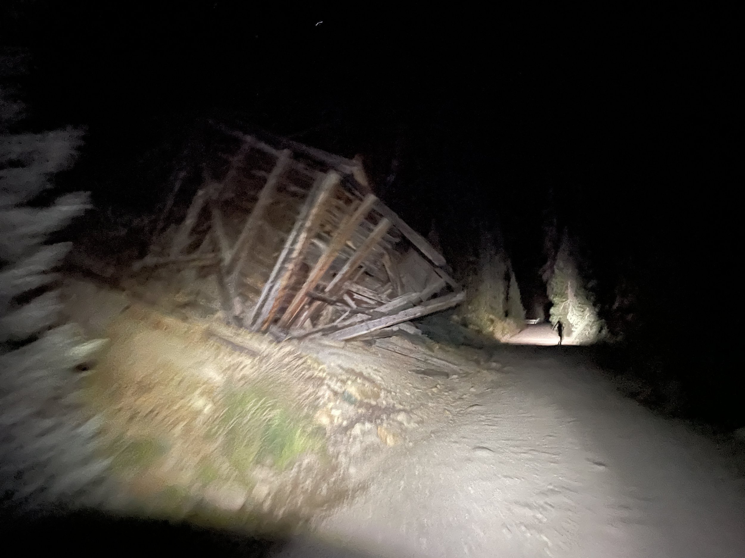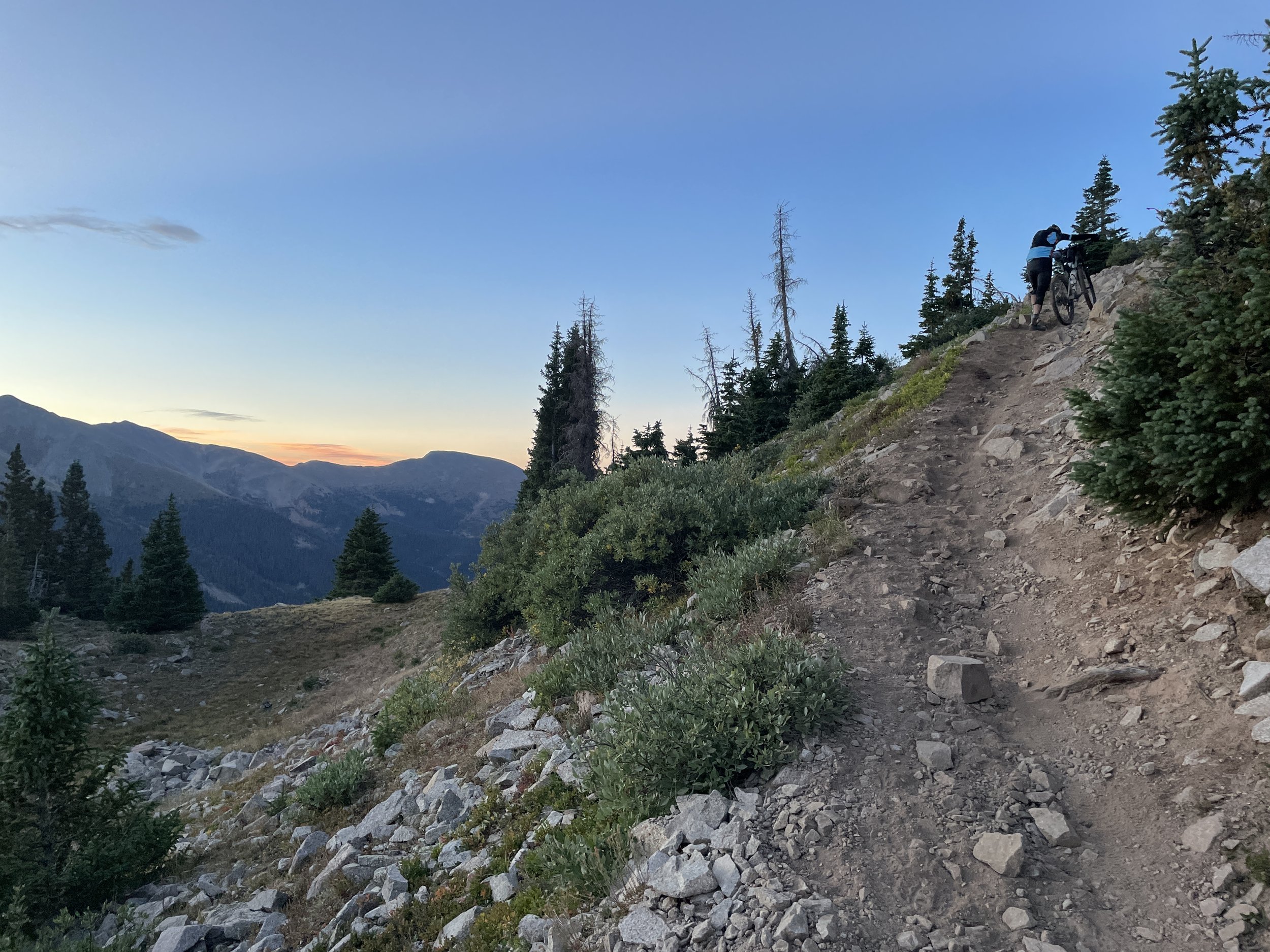 The daylight portion of the ride is all quite pleasant. I descend 9 miles down Canyon Creek, up Old Monarch Pass, along the spine of the country on the Monarch Crest trail, and absolutely shred the Starvation Creek descent—seriously, I've never ridden Starvation so cleanly. All of that riding passes about as quickly as this sentence. As soon as the sun rises, I can once again touch bottom, and with proper footing comes linear time, and like all linear time, it passes.